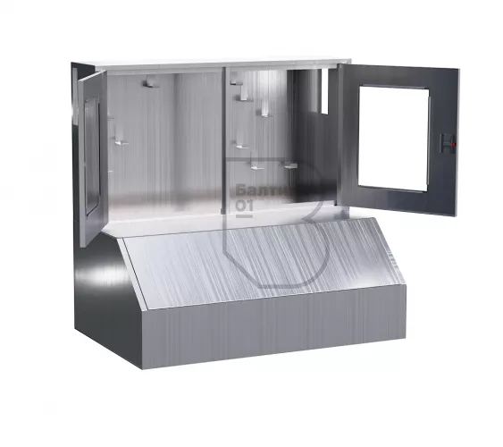 Щит пожарный комбинированный "Модуль" из нержавеющей стали (2 двери оргстекло)