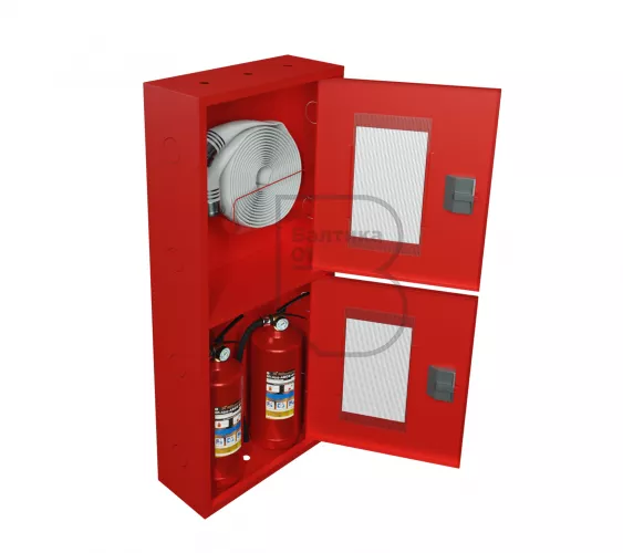 Дверцы пожарного шкафа открываются на 160 градусов. Имеют запорное устройство в виде пластиковой защелки. На каждой дверце имеется смотровое окно со вставкой из поликарбоната.