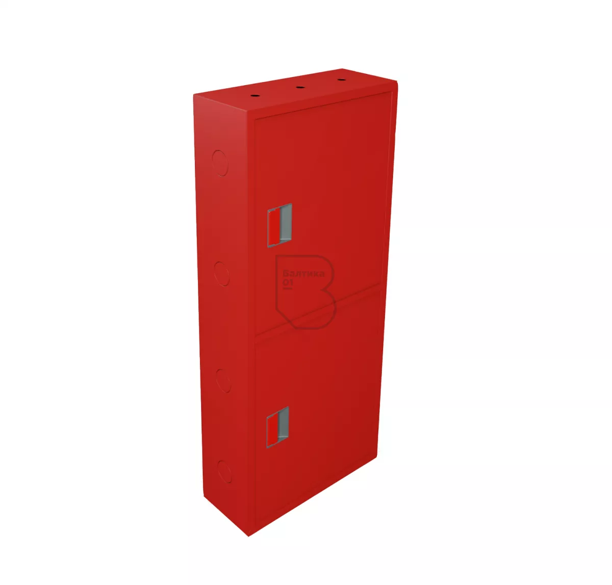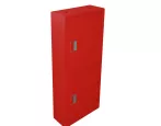 По типу монтажа – навесной, по наличию смотрового окна на дверцах шкафа – закрытый, по цвету изделия – красный (RAL 3000).