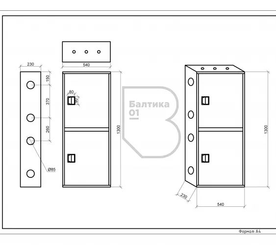 - Габаритные размеры, мм1300х540х230