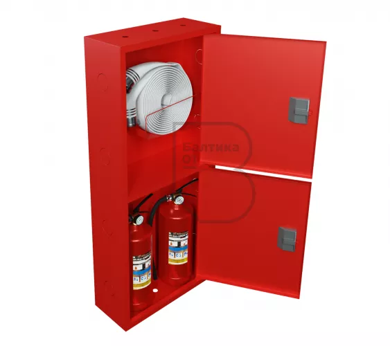 Шкаф пожарный ШПК-320 НЗК – предназначен для размещения и хранения рукава пожарного в сборе, пожарного вентиля (клапана) и двух огнетушителей до 8 литров. Шкаф оборудован кассетой (турелью) для пожарного рукава.