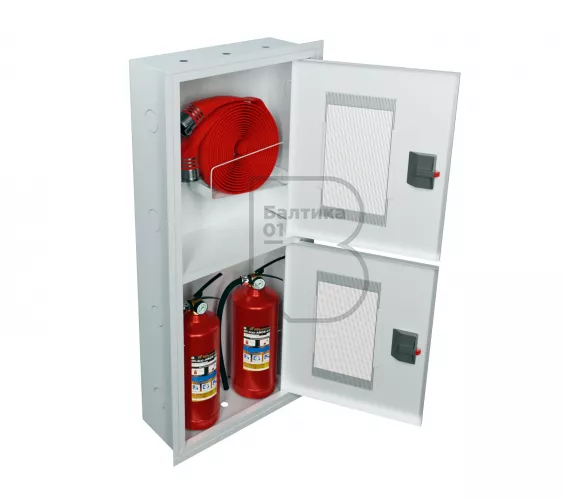 Дверцы пожарного шкафа открываются на 160 градусов. Имеют запорное устройство в виде пластиковой защелки. На каждой дверце имеется смотровое окно со вставкой из поликарбоната.