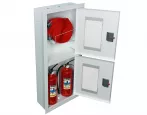 Шкаф пожарный ШПК-320 ВОБ – предназначен для размещения и хранения рукава пожарного в сборе, пожарного вентиля (клапана) и двух огнетушителей до 8 литров. Шкаф оборудован кассетой (турелью) для пожарного рукава.