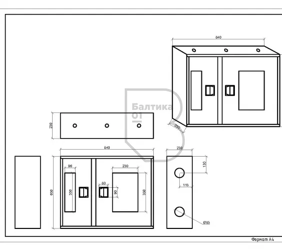 - Смотровое окно на дверцах шкафадва – 96х350мм, 230х350мм